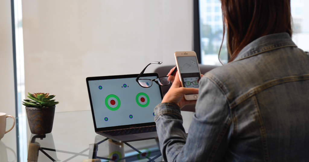 The customer links a simple, free app to their computer. Then, they scan their glasses’ lenses by using both device cameras.